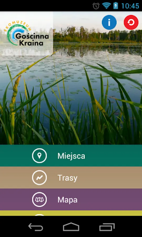 The application works online and offline and uses OpenStreetMap mapping sleepers. Ecomuseum "Hospitable Land" was created in cooperation project Association of Fisheries Group "the Sola River basin and Wieprzówka" Carp Valley Association and the Association of Local Fisheries Group "Frog Country" under measure 4.2 "Support for interregional and international cooperation" OP FISH 2007 2013.