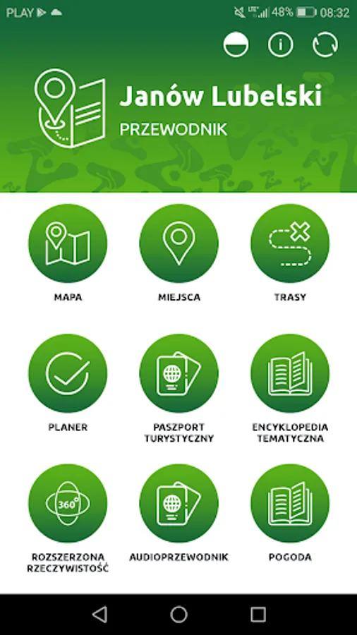 The "Janów Lubelski" application has been developed in two languages: Polish and English, and it does not require an Internet connection for its proper operation. All you need to do is update the database in advance and you are ready to go on a trip!