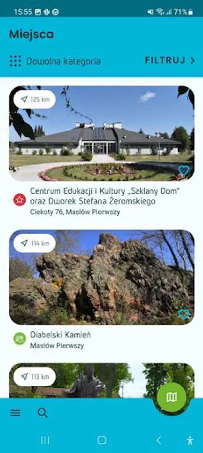 In the "Masłów" application you can find a lot of information divided into useful categories. Among them were, among others, objects, events and tourist routes. In these modules, the user can search for a specific object and easily locate it on the map and set a route to it. The objects have photos and descriptions, thanks to which the application becomes an interesting guide. There are suggestions in the route module