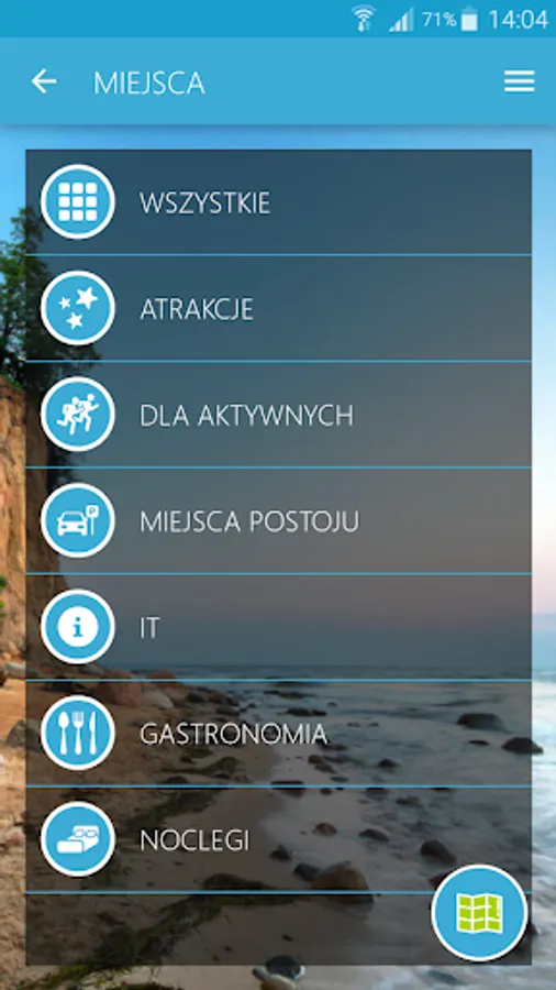 FROM THE BALTIC SEA KASZUBY is a database of more than 100 hiking trails located in the province of Pomerania and West. It was created by the partnership project Forest Districts Trzebielino, Dretyń, Bytów, Sławno, Miastko, Osusznica, Warcino and Municipalities Black Dąbrówka, Darłowo, Lipnica, Malechowo, Parchowo, Polanow, Postomino, Sławno, Studzienice, Trzebielino, Tuchomie, Bytów, Darłowo, Kępice, Sławno Darłowo and cities and is famous. The application allows you to browse tourist routes on a map, including hiking, biking, kayaking, skiing, horse riding and Nordic Walking. Color routes in the application corresponds to the color field. For each route is accompanied by interesting objects, including places sightseeing, nature, catering, accommodation and other tourist attractions. For each route you can see the active elevation profile. The application allows you to sort and route objects by reading GPS, so in the first place to come to us those closest to us. In addition, the application using the built-in navigation will lead us along the route or indicate access to the beginning of the route, or individual objects. Navigation will be guarded by our position on the route and informs when it step off. Database of over a thousand objects were divided into categories, each of them also has his business card, which contains a description, contact details and location.