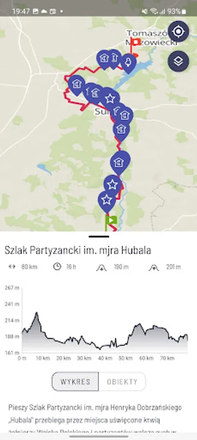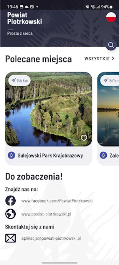 The content in the "Powiat Piotrkowski" application is presented in Polish and English, the guide itself can also work offline, after downloading the data.