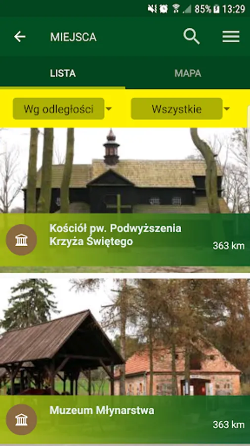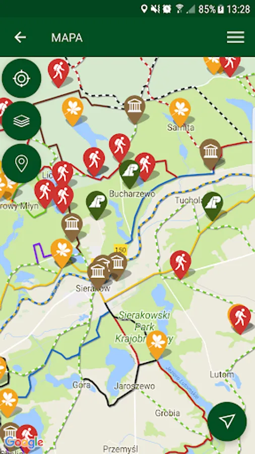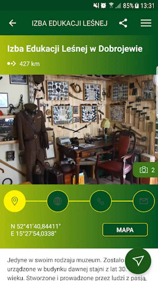 In the application, you will find a range of information to help plan visits in the forest complex. Several hundred objects were divided into categories so you can easily find a berth for example, vehicles, camping place or monument: mansions, churches, palaces ...