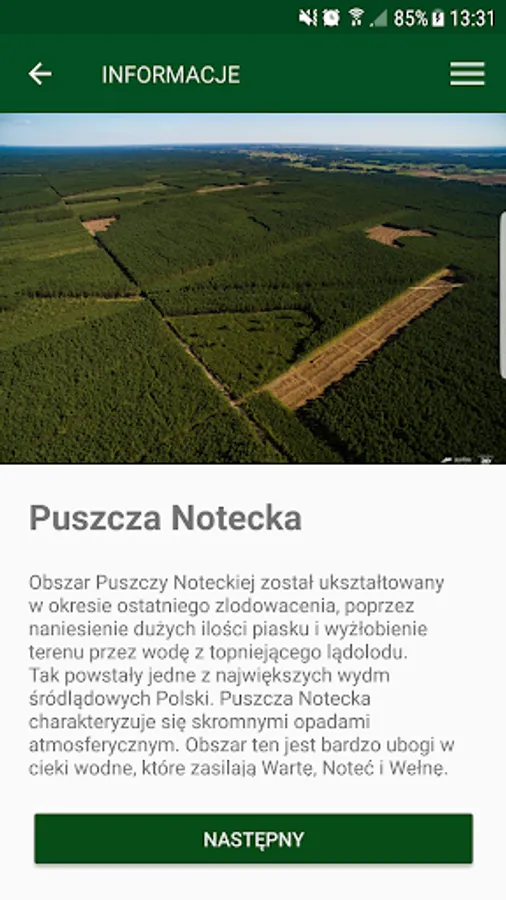 Mobile application "Notecka" shows the beauty of the forest area, which is Notecka. The contents of the mobile guide includes eight areas of forest districts: Sieraków, Karvina, Wronki, Raven, Miedzychód, Schwerin, manure and Potrzebowice.