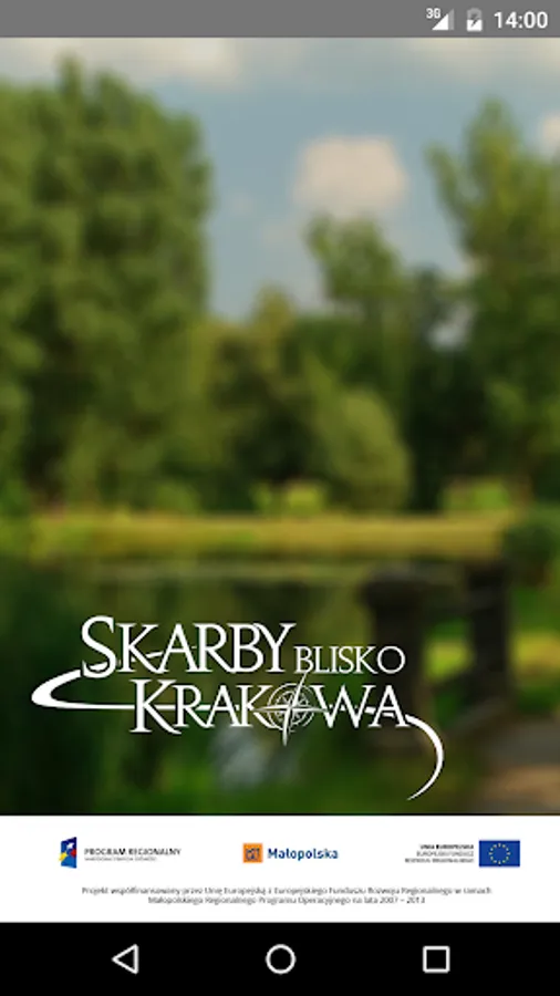 The app works offline, using a connection to the Internet only to download the latest data. With the website was created as part of the project Fri. "Building a comprehensive tourism product" Treasures of close to Kraków ", co-financed by the Malopolska Regional Operational Programme 2007-2013.