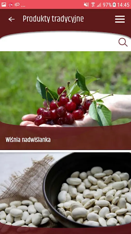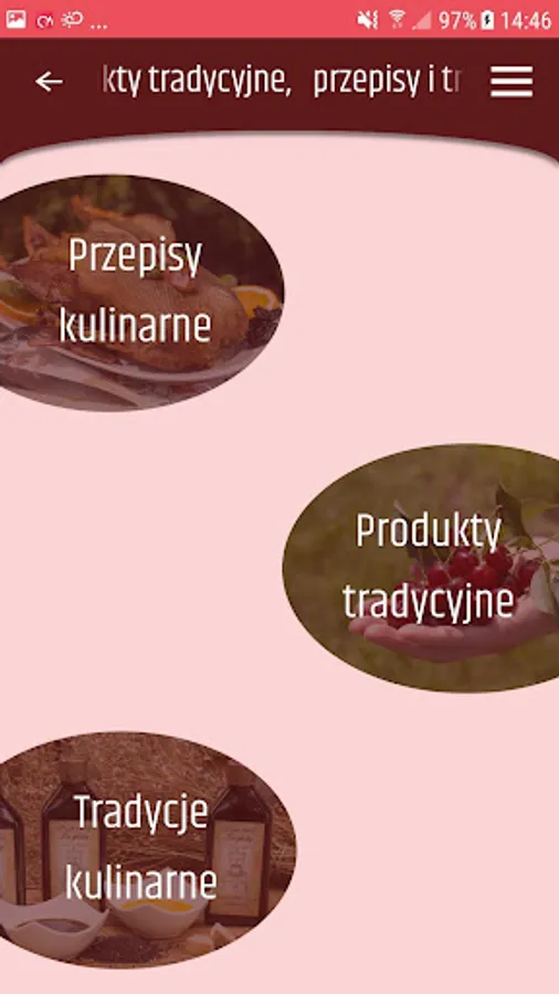An important module in the application are "Traditional products, recipes and culinary traditions", where you can find plenty of recipes for tasty, Świętokrzyskie dishes. Valuable information for the user can also be a hint where you can taste the food. Here you can also find descriptions of traditional products and culinary customs.