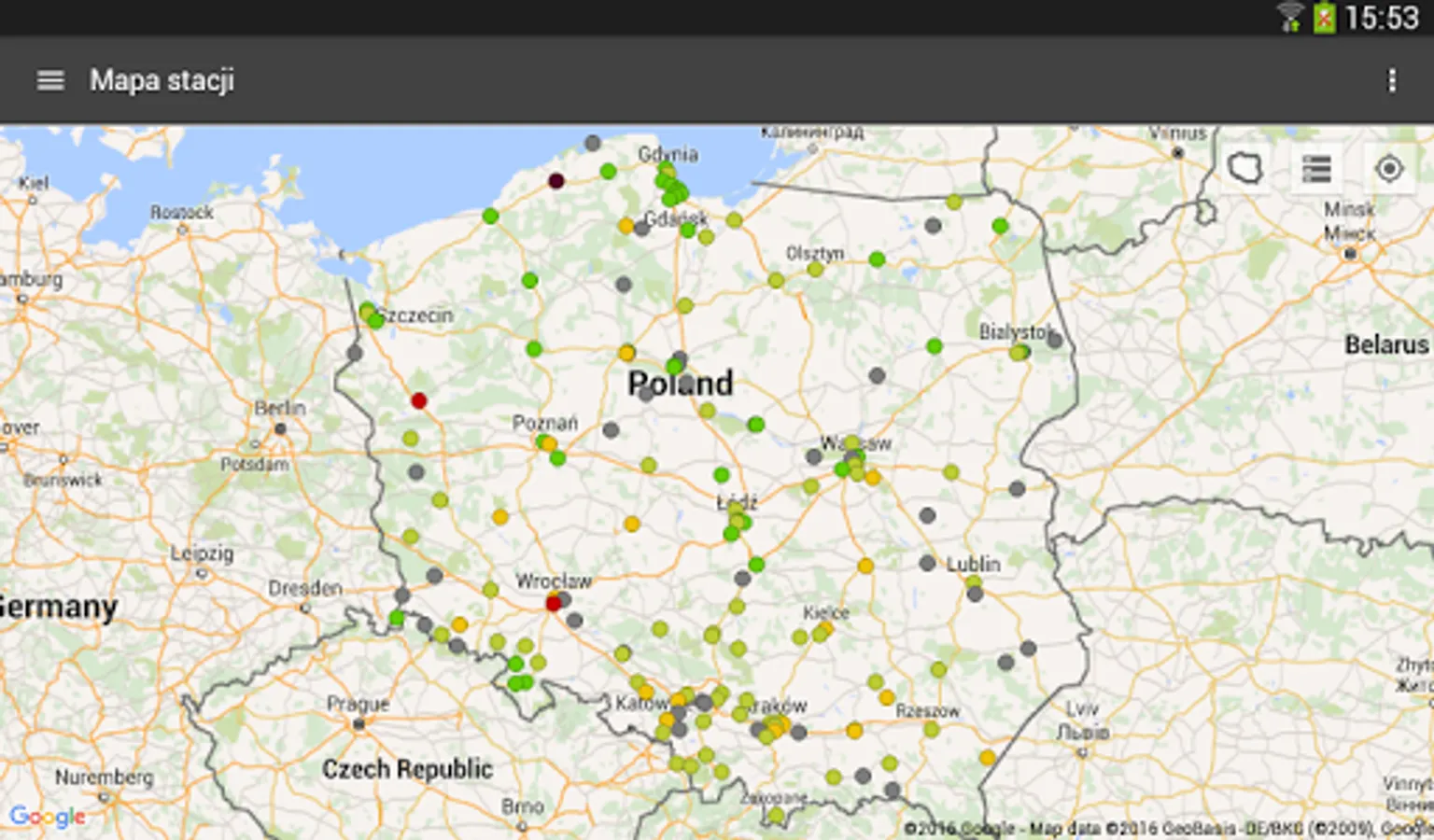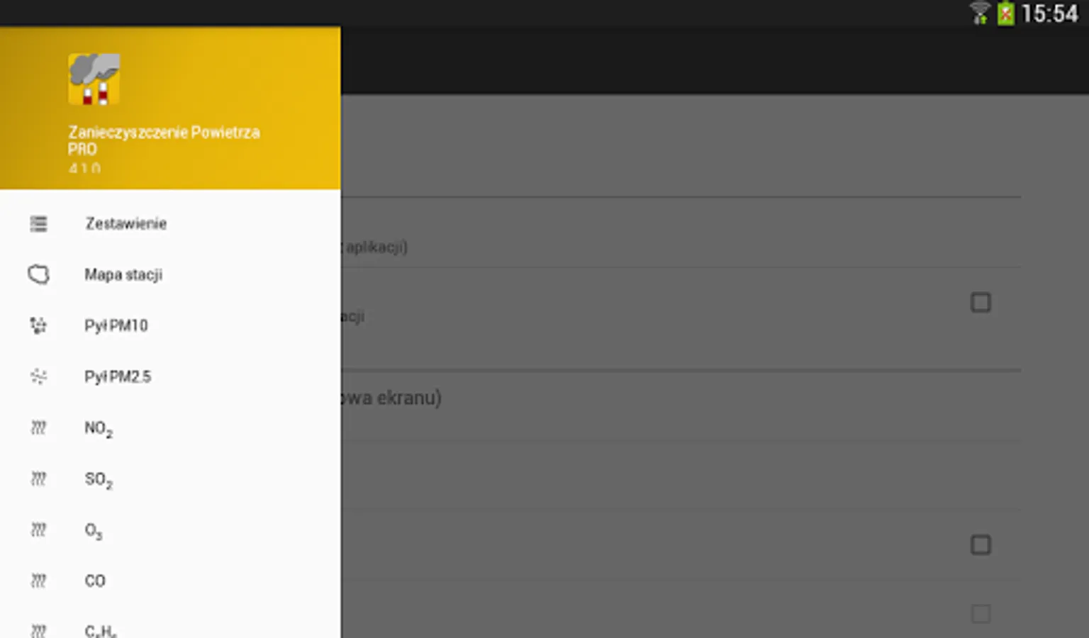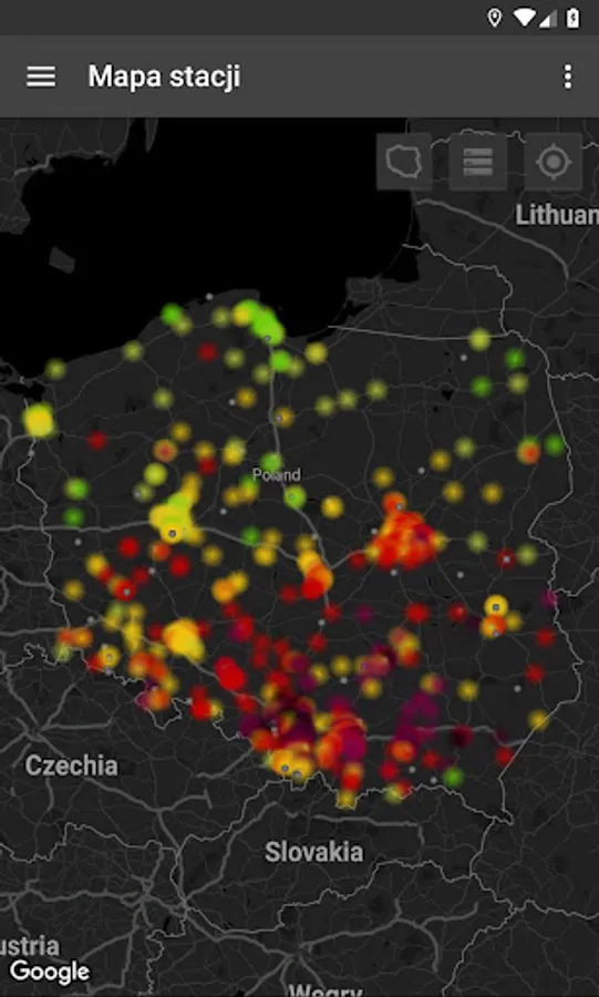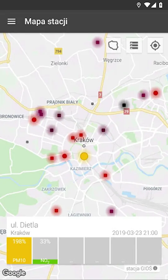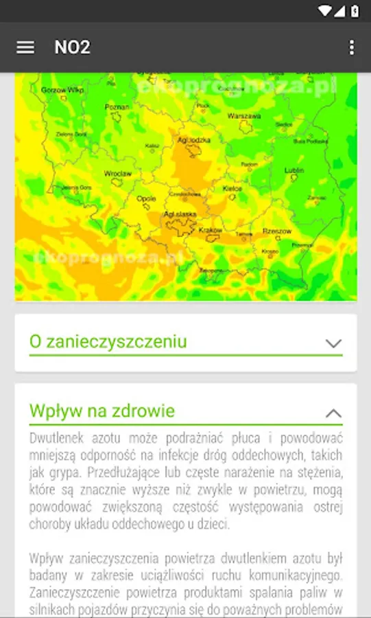 - possibility to choose a map with forecasts for specific pollutants for today, tomorrow and the day after tomorrow for Małopolska, Poland and Europe