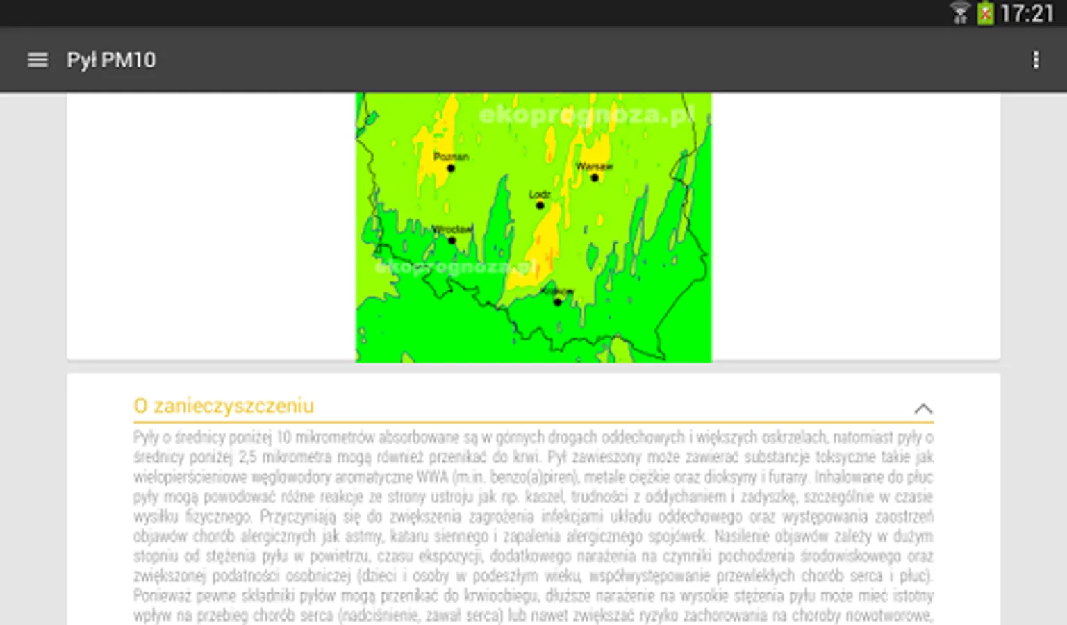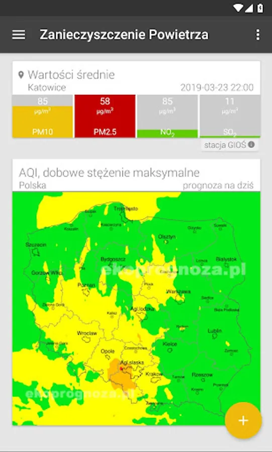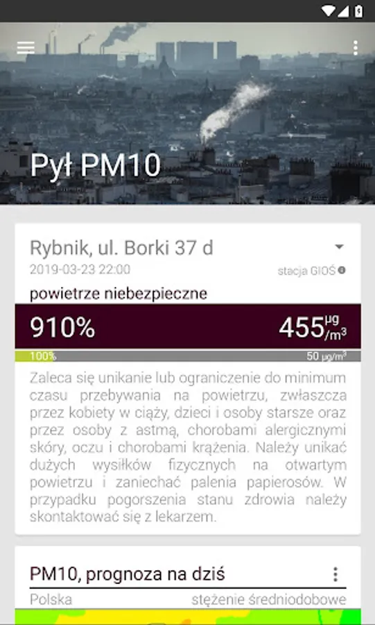 You can also follow air pollution forecasts thanks to cooperation with the ekoprognoza.pl portal.