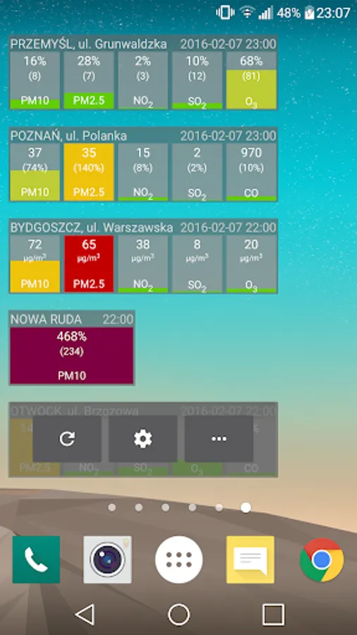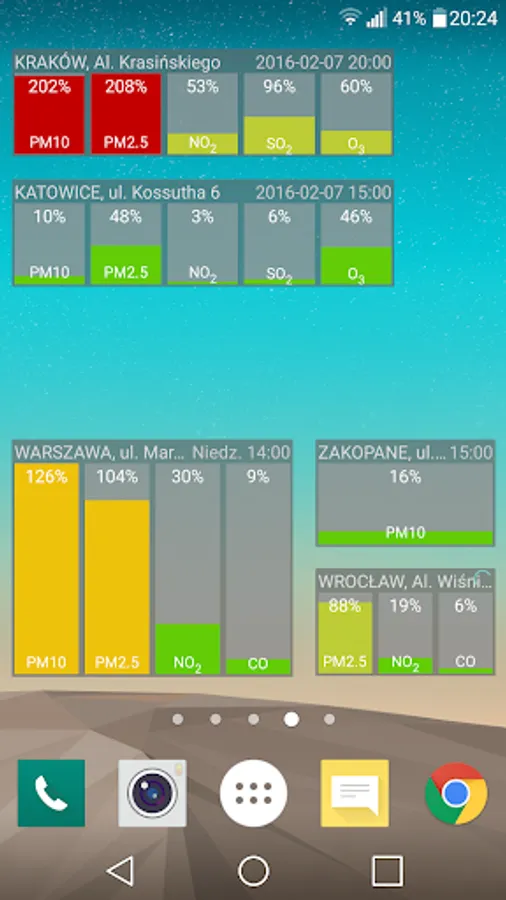 - the possibility of adding maps with forecasts of AQI and CAQI indexes for today, tomorrow and the day after tomorrow for Małopolska, Poland and Europe to the main screen