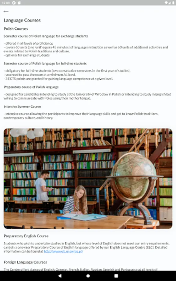 Welcome to the Junglebook app of the University of Wrocław. Here you will findall the information you need to get started and to settle into the Wrocławcommunity, whether you are a new or a prospective student, a short-termmobility visitor, conference participant, or you’re just here for a semester or two.Download the app to effortlessly navigate your way around the campus, accessinformation about being a student in Poland, or explore the cultural offer of thecity. This Junglebook is your compass for discovering how to get involved withUniversity life, opportunities, and events. Get the information you need to makethe most of your UWr experience!Features:- Guides and checklists covering everything you need to do once you arrive,- Practical information about the dormitories, housing, and getting aroundWrocław,- A map of buildings, services, and other points of interest on and off-campus,- A bucket list of the most important touristic must-sees,- Useful Polish phrases,- Advice on where to look for further help and support.