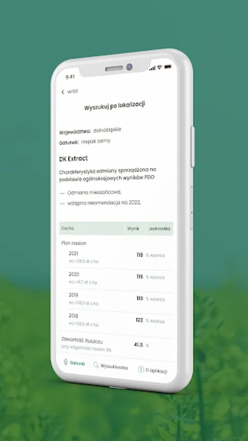 If you are a farmer and you want to achieve the highest possible yields of rape or soybean, this is the application for you. Quick and easy access to proven varieties of winter oilseed rape, spring oilseed rape and soybean by transferring to your smartphone the knowledge base resulting from the list of varieties recommended by the Central Research Center for Cultivar Testing (COBORU).