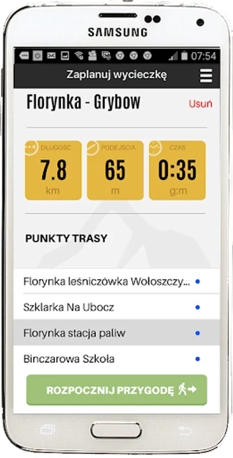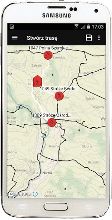 The application includes a route developed by the publisher of 10 tours leading circular Trail Bike Grybowska Earth.