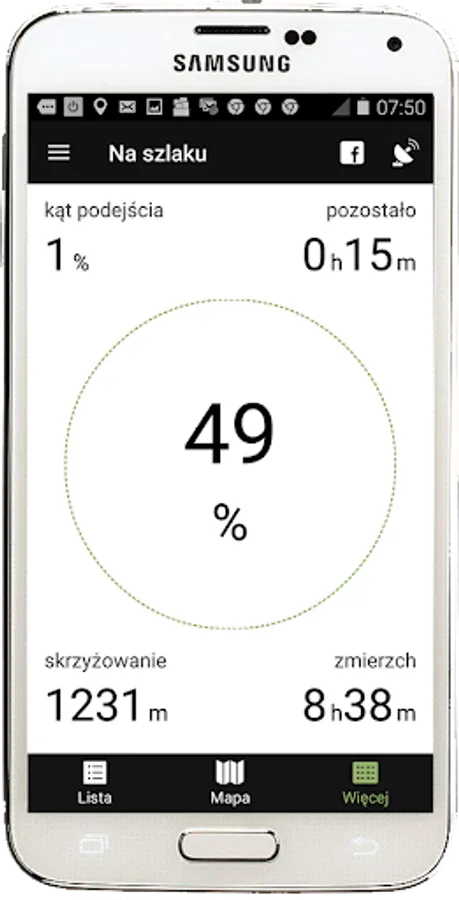 Read by the user's GPS position is not only visible on the map with the marked trail - but also on a clear line diagram showing more points on the trail. It gives updated information about the route traveled, time remaining and the time remaining until dusk and the angle of the section of the route and the distance to the nearest intersection of routes.