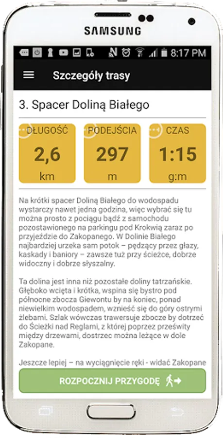 The application includes a route developed by the publisher of 67 tours leading to many popular and places of interest in the Polish Tatras. Their selection makes it easy to search and filter on a set of simple: time tours, the prevailing character of the landscape or the area of the Tatra Mountains.