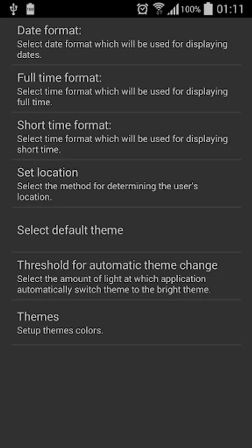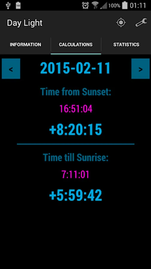 The application allows to check information on the time of sunrise and sunset times for your current location.