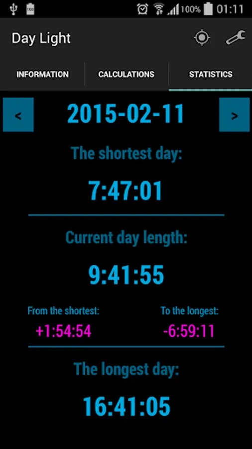 With this application you can also check the length of the shortest and longest day of the year for the current user location.