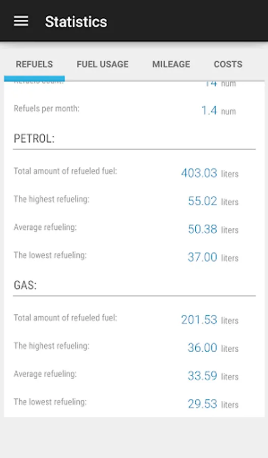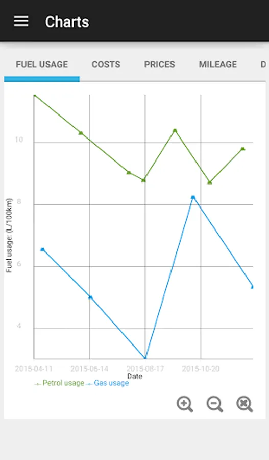 The program allows you to monitor the fuel consumption in vehicles with dual fuel system: eg. petrol and gas.