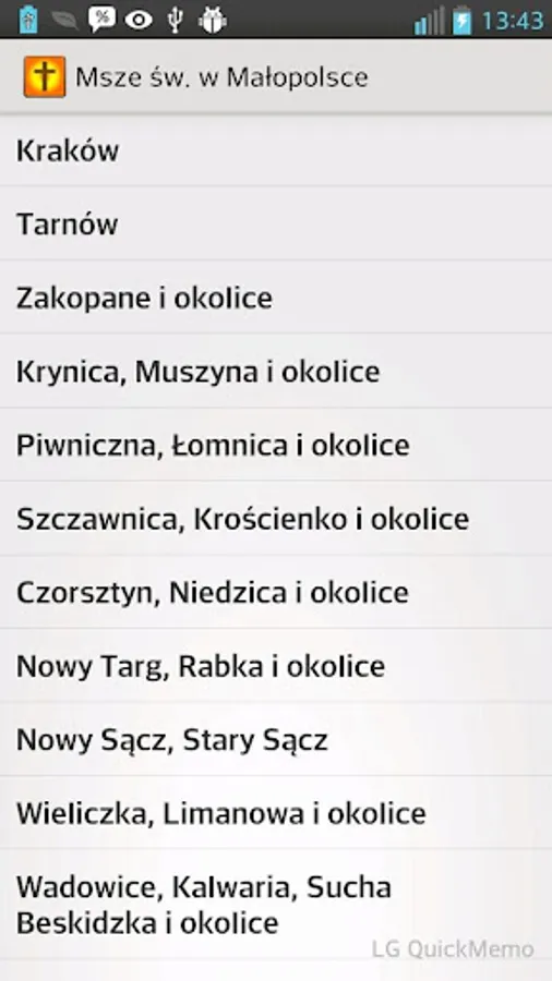 The application contains a list of the Sunday Masses in the system hourly for major tourist destinations in Malopolska.