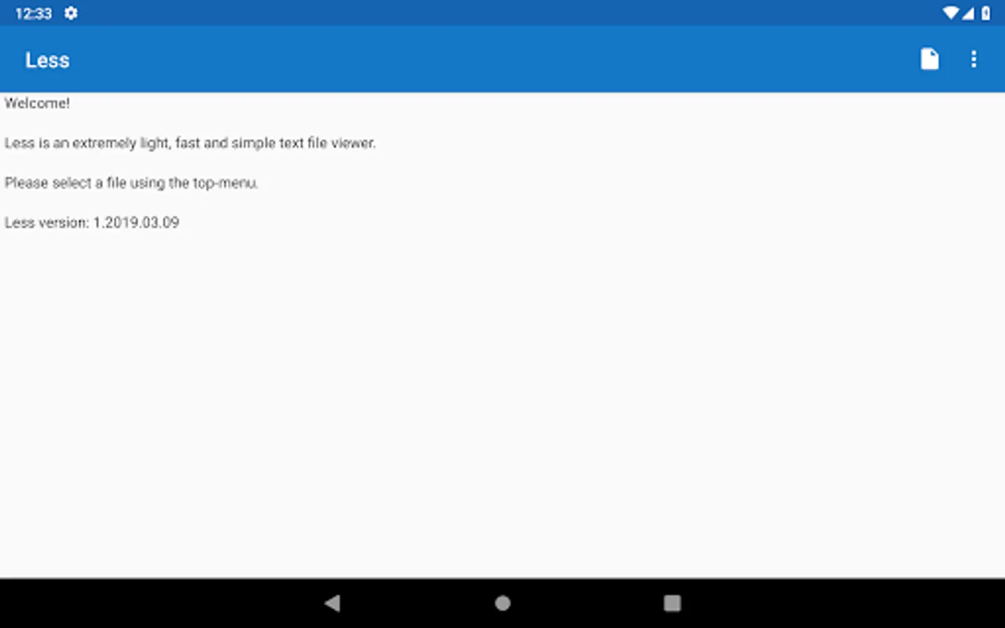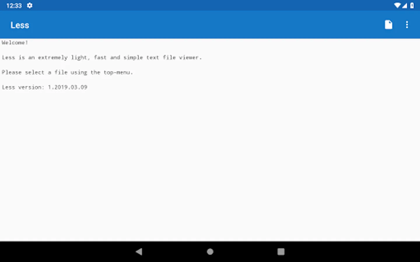 /bin/less (or /usr/bin/less if you have one of those distributions) functional equivalent for Android -- view a file -- nothing more, nothing less.