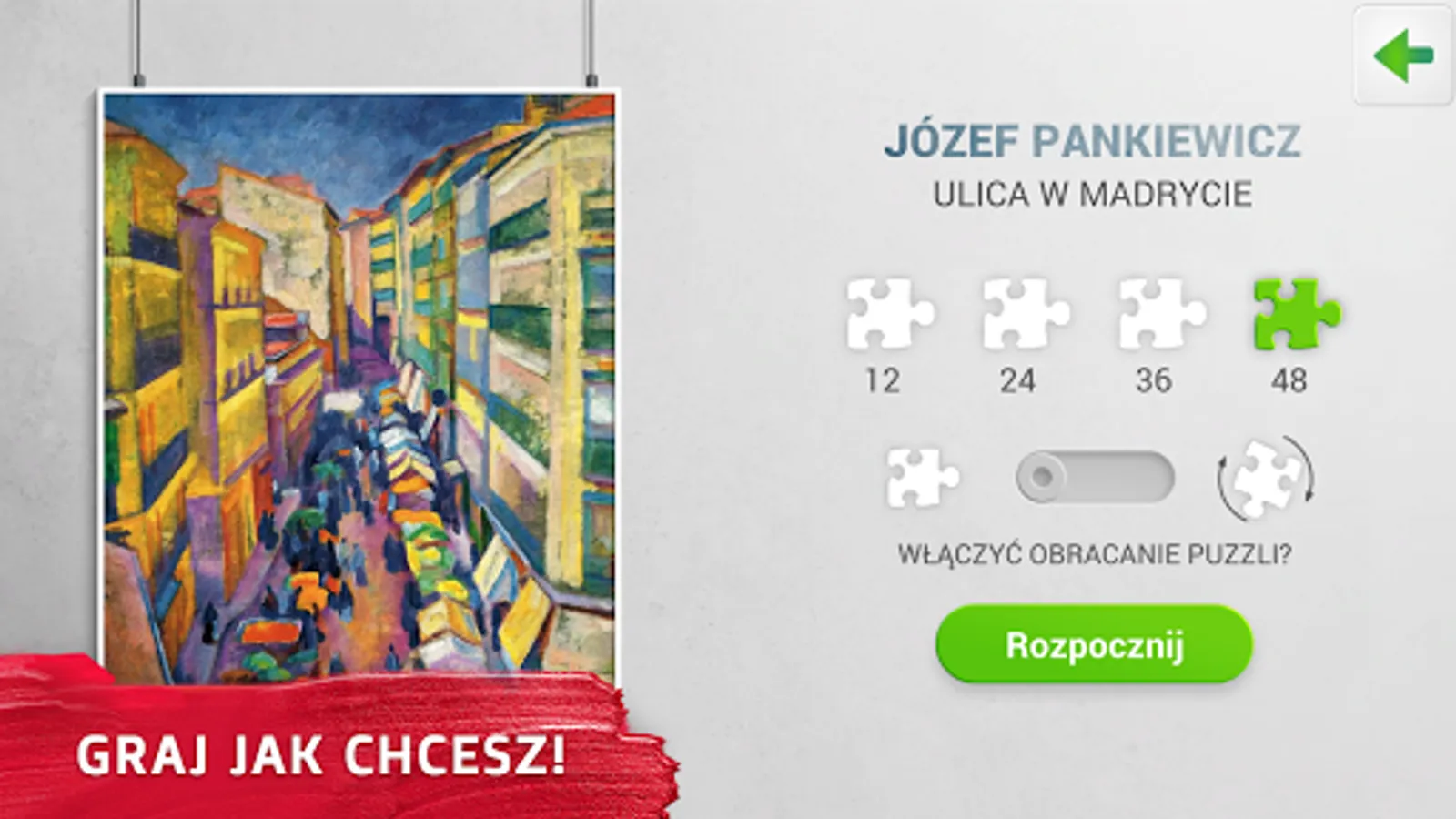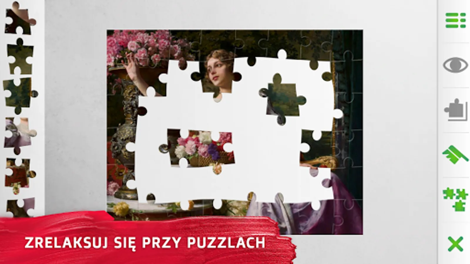 Ułóz Kultura are dozens of free puzzle boxes presenting the greatest Polish works of art on your smartphone. Enter the colorful world of Polish painting and relax while discovering the most beautiful works of national history. Complete puzzles and travel through the ages as you meet the country's most talented and innovative creators. Relax and let yourself be carried away on an addictive journey through battlefields, palaces and the most beautiful landscapes.