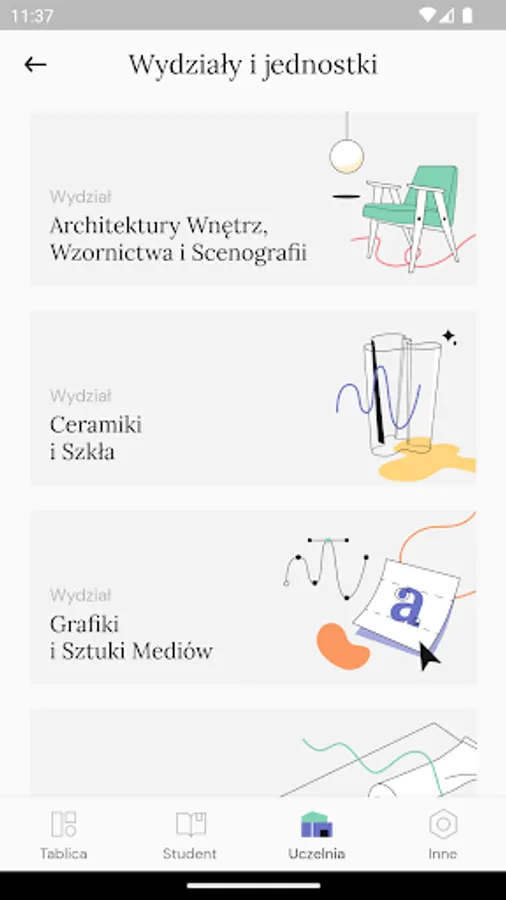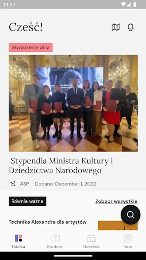 One app for better information, orientation and navigation at the Academy of Fine Arts. Eugeniusz Geppert in Wrocław. Join the Academy community to follow events, meet lecturers, studios, locations, and obtain the most important information. Stay up to date by receiving notifications about news such as exhibitions and vernissages, presentations and shows, meetings, competitions, workshops, announcements and announcements.