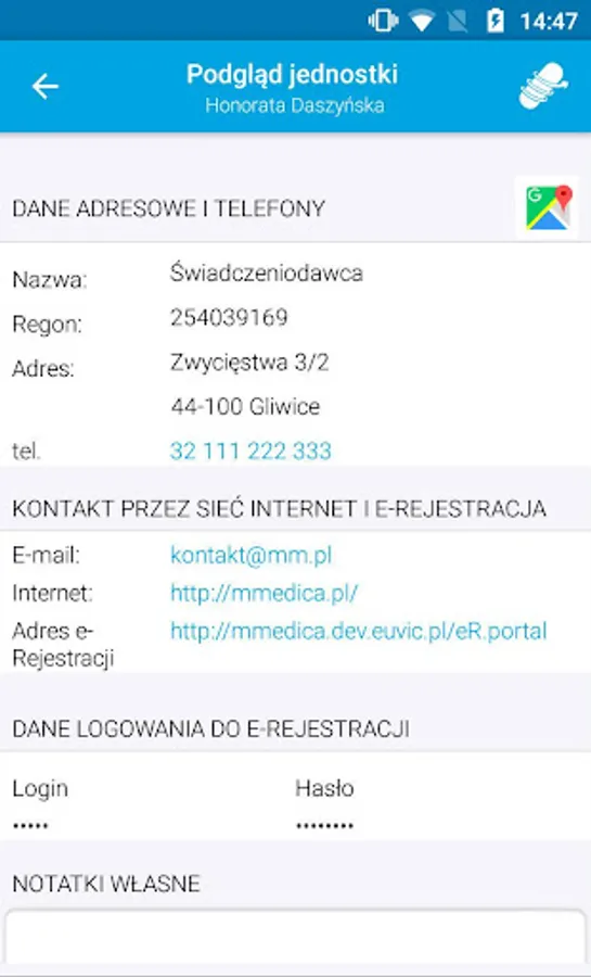 • Managing your own list of clinics, surgeries, hospitals and other medical units, with access to always up-to-date data.