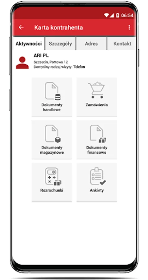 • Geolocation - recording the place of the visit or the route traveled, as well as optimization of planned routes via the management console