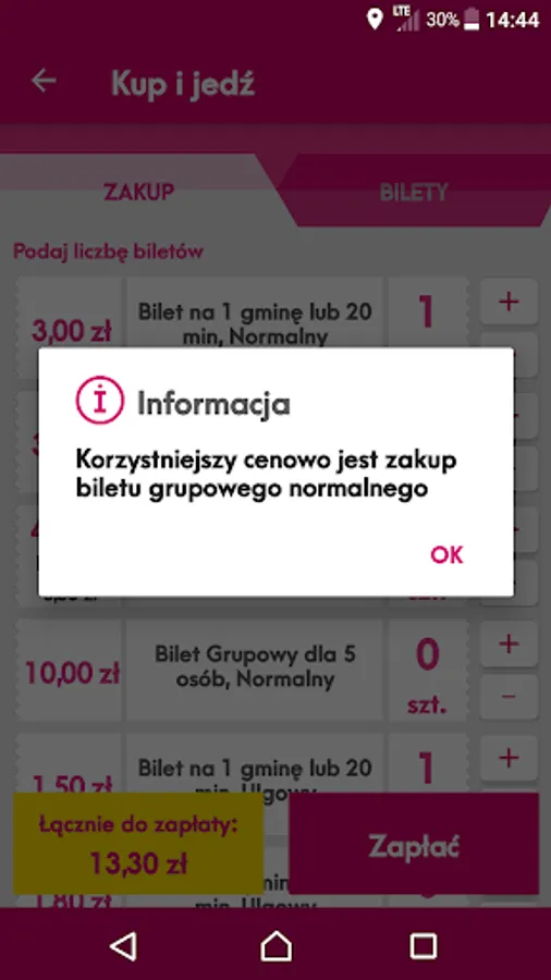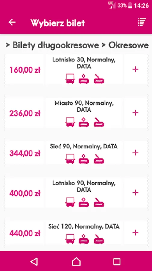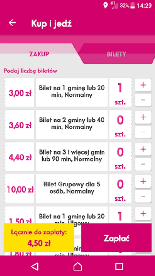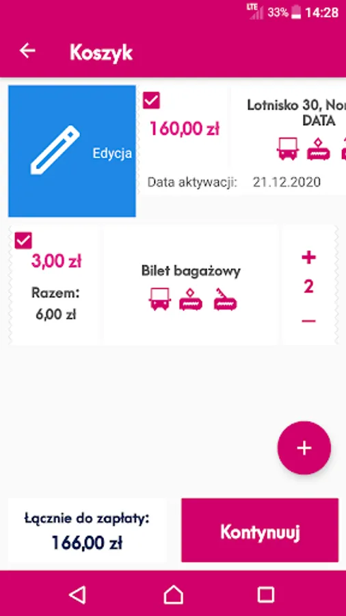 - purchase a single-travel, group and baggage ticket under the "Buy and go" option after payment, tickets are automatically validated and displayed on the screen in the form of a QR code (they are not saved on the card),