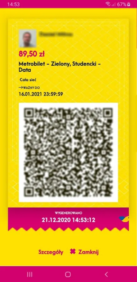 - purchase each ticket from the ZTM tariff to be saved on the ŚKUP card (period tickets from the indicated date and metrotickets on a personalized card can be displayed in the form of a QR code on the application screen),