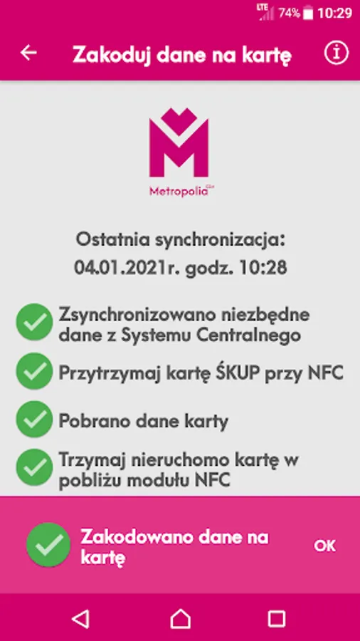 The application allows you to purchase ZTM tickets directly in the application (options: "buy and go" and "Ticket purchase). It also allows you to independently save tickets and top-ups on the ŚKUP card, which have been purchased via the Customer Portal (www.portal.kartaskup.pl). Technological requirements: smartphone that supports NFC modules.