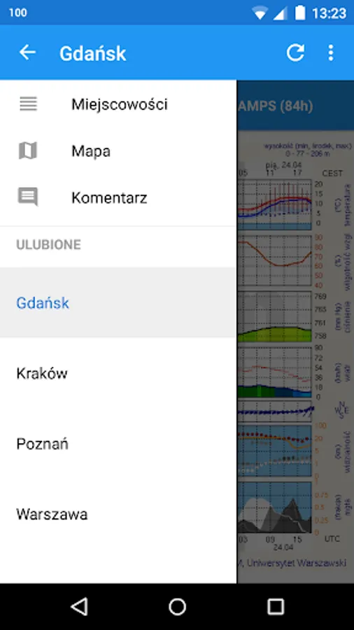 - Comment forecaster comes with a free service meteo.pl, conducted by ICM, Warsaw University.