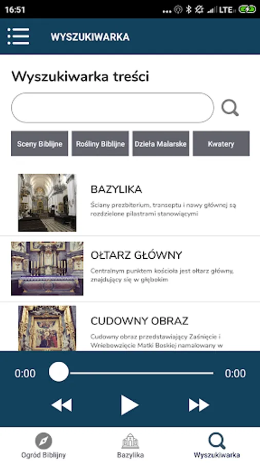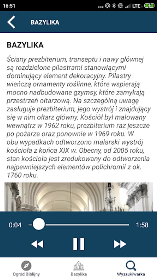 The application is a form of an audio guide that allows you to visit the Basilica in Stara Wieś using mobile devices.