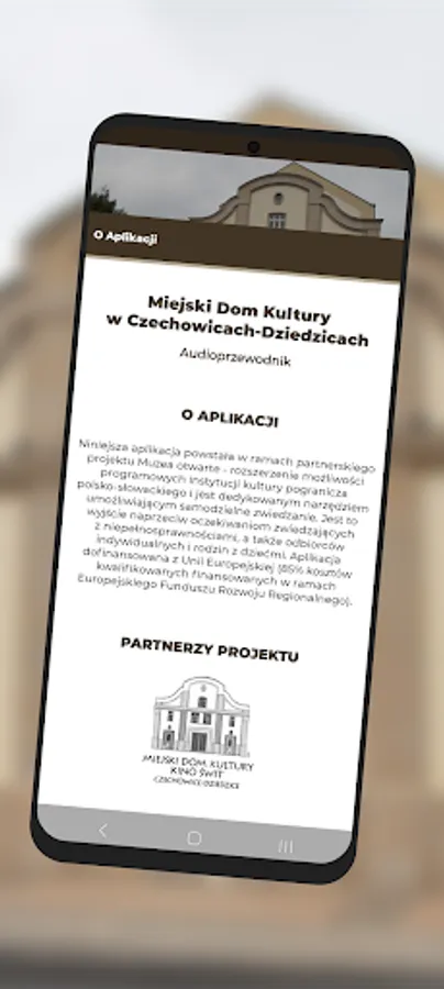 This application was created as part of the partnership project "Open museums - extending the program capabilities of the cultural institutions of the Polish-Slovak borderland" and is a dedicated tool enabling independent sightseeing. It is an attempt to meet the expectations of visitors with disabilities, as well as individual recipients and families with children.