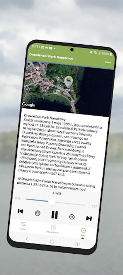 The application is a form of an audio guide that allows you to explore the Drawa National Park using mobile devices.