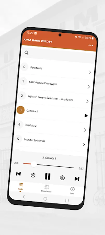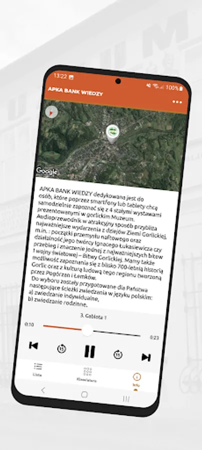 The KNOWLEDGE BANK APKA is dedicated to people who want to get acquainted with the 4 permanent exhibitions presented at the Gorlice Museum on their own via smartphones or tablets.
