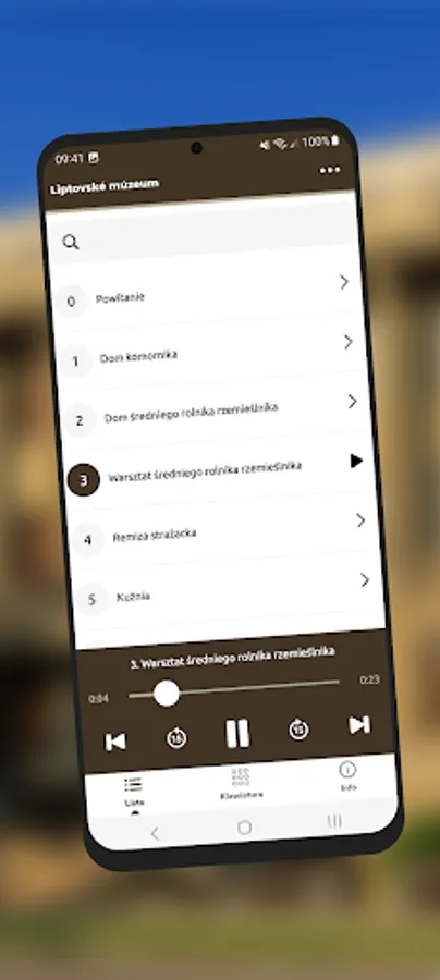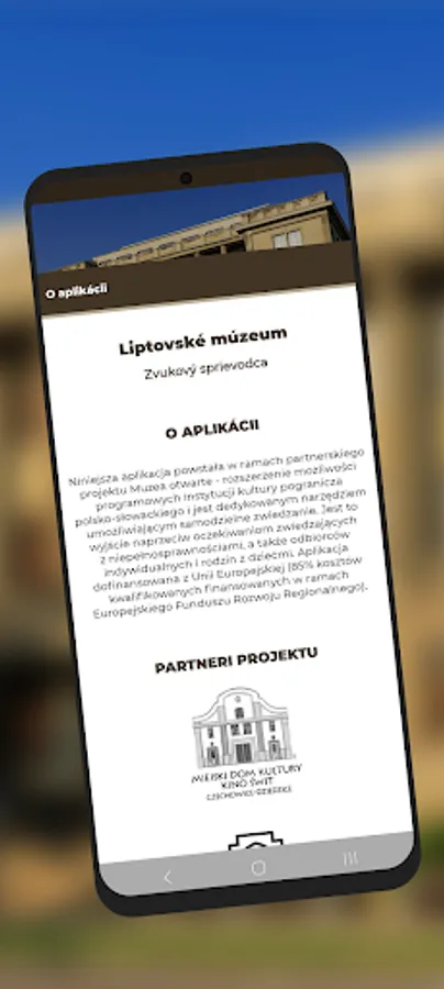 This application was created as part of the partnership project "Open museums - extending the program capabilities of the cultural institutions of the Polish-Slovak borderland" and is a dedicated tool enabling independent sightseeing. It is an attempt to meet the expectations of visitors with disabilities, as well as individual recipients and families with children.