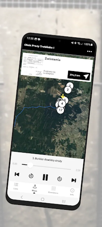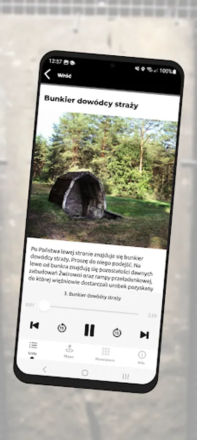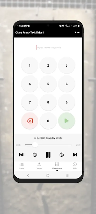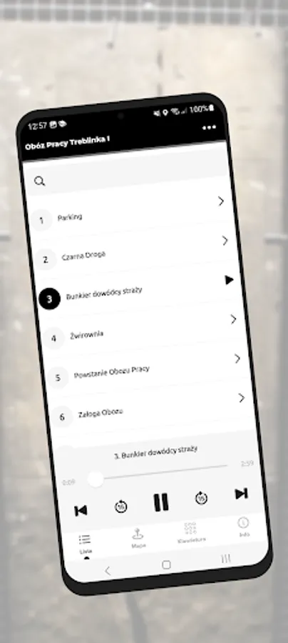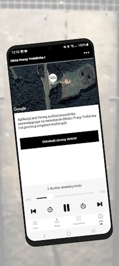 The application is a form of an audio guide that allows you to visit the Treblinka I Labor Camp using mobile devices.