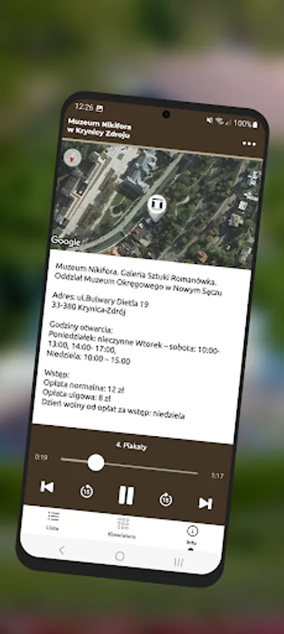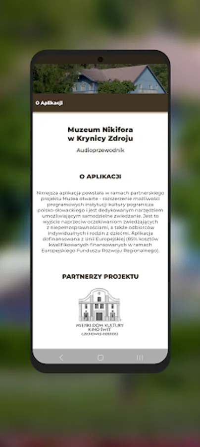 This application was created as part of the partnership project "Open museums - extending the program capabilities of the cultural institutions of the Polish-Slovak borderland" and is a dedicated tool enabling independent sightseeing. It is an attempt to meet the expectations of visitors with disabilities, as well as individual recipients and families with children.