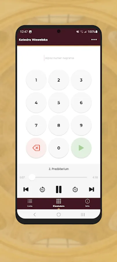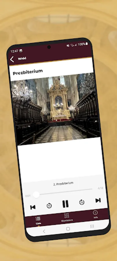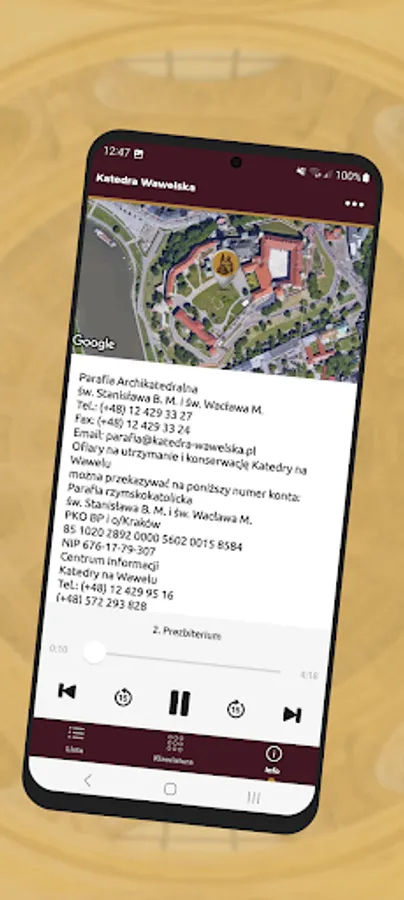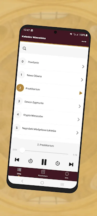 The application is a form of an audio guide that allows you to visit the Wawel Cathedral using mobile devices.