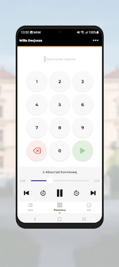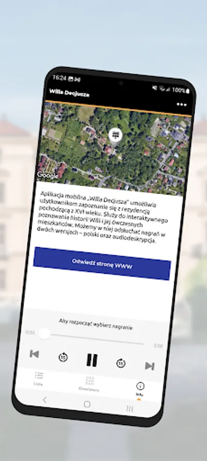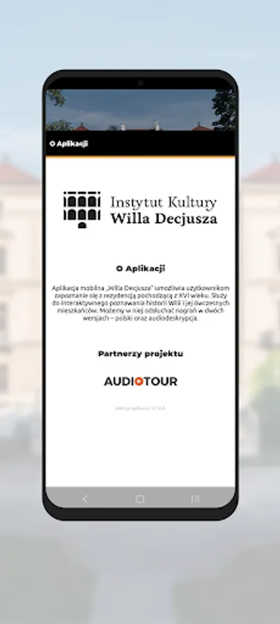 The "Villa Decius" mobile application allows users to get acquainted with the residence from the 16th century. It is used for interactive learning about the history of Neris and its inhabitants at that time. We can listen to recordings in two versions - Polish and audio description.