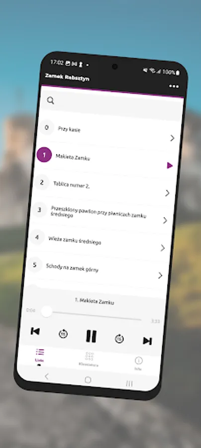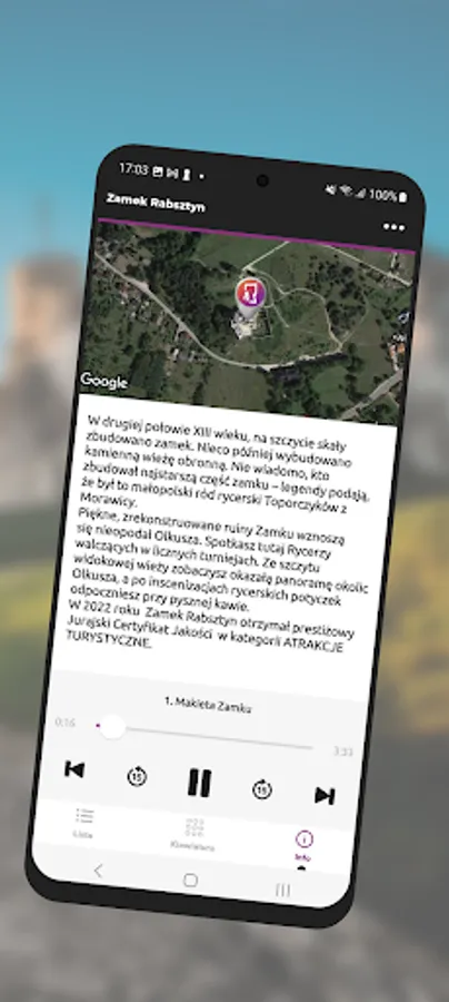 The application is a form of an audio guide that allows you to visit the Rabsztyn Castle using mobile devices.