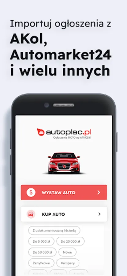 Want to sell a car? Don't pay for an ad! In Autoplac you can add them completely for free! The application allows you to add automotive ads in a quick and convenient way, and without limits. Your ads will be displayed in the application and on the Autoplac portal, as well as in the Yanosik application.