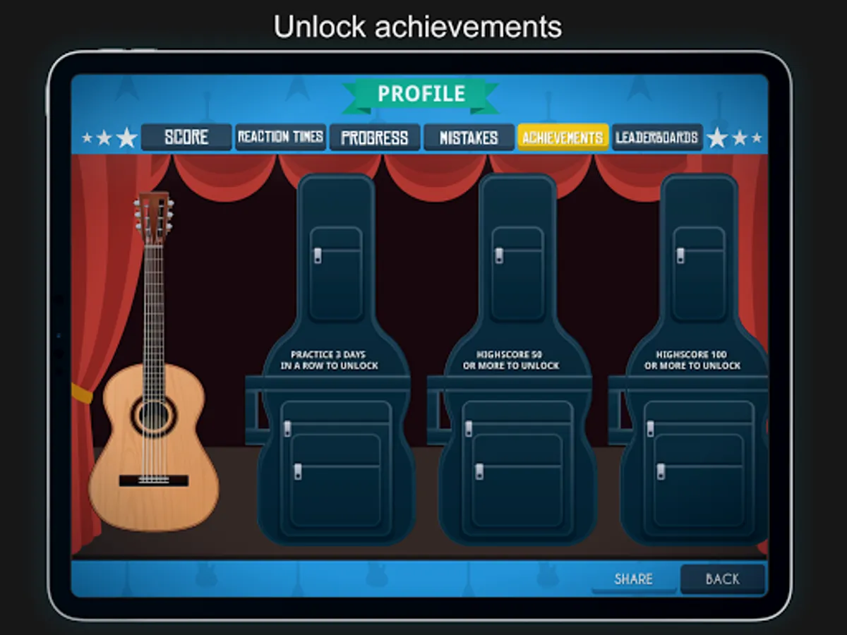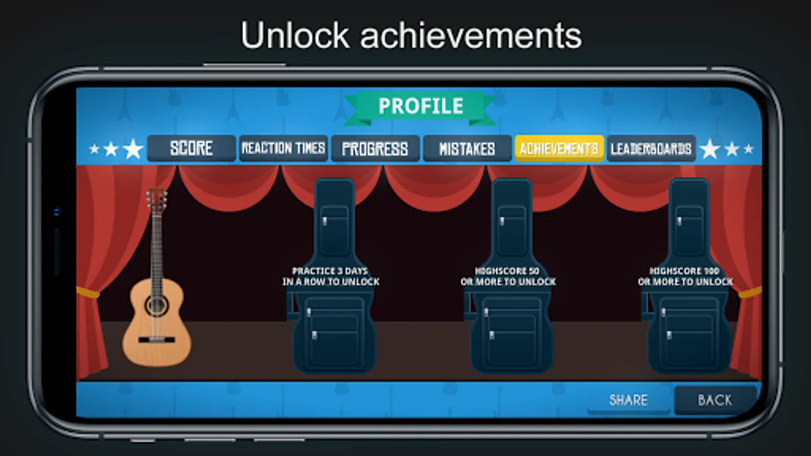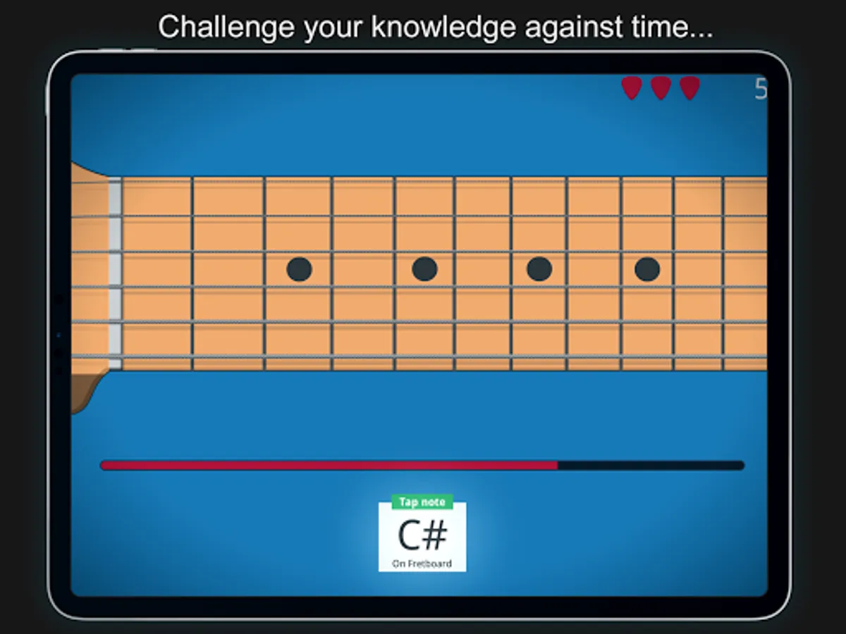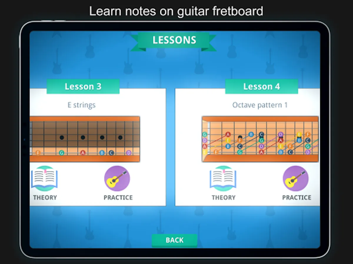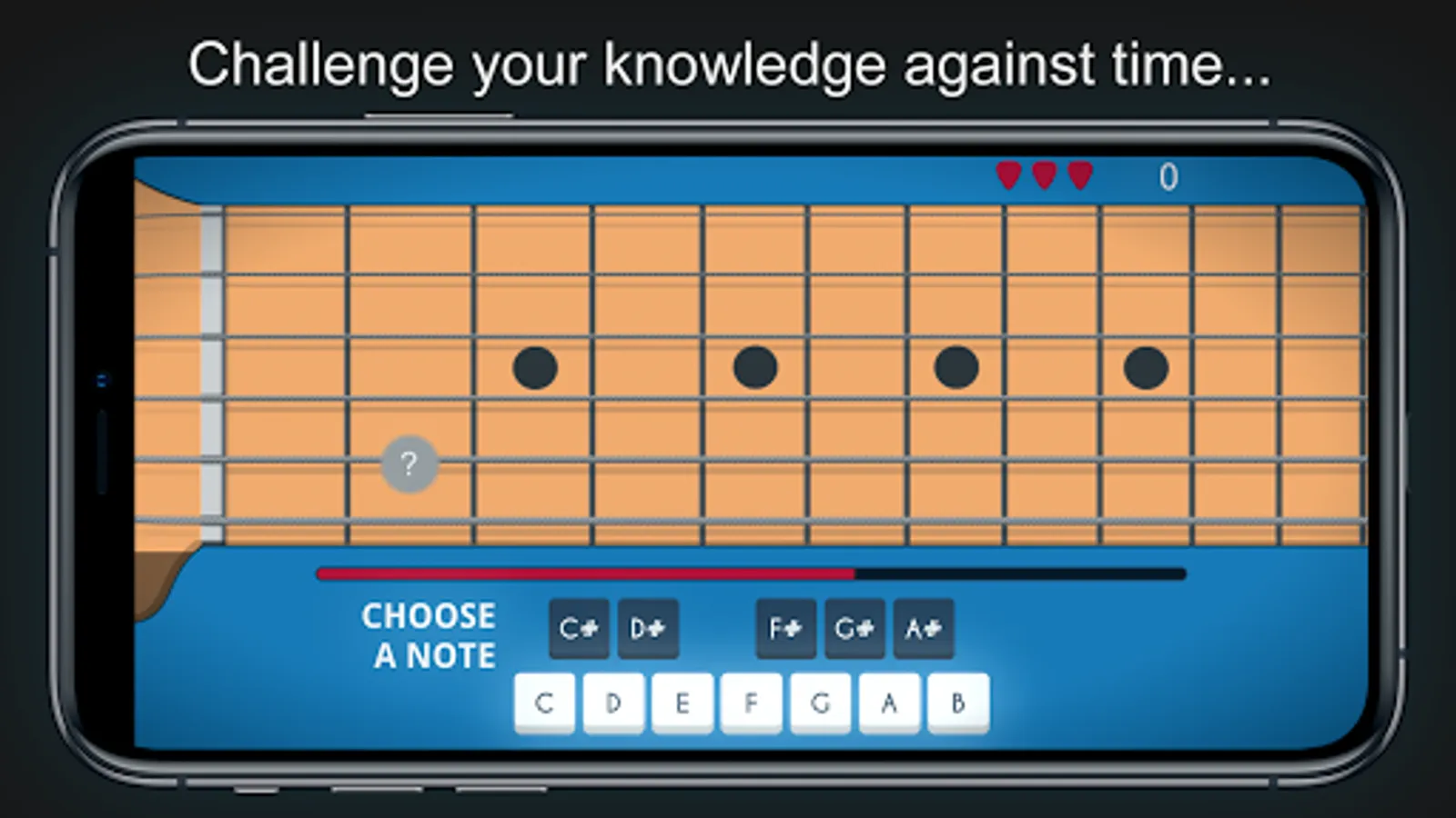 Guitar Notes is a game that improves your guitar skills. This application was created in collaboration with professional guitarists in order to help people memorize notes on a guitar's fretboard. Before the clock runs out guess the correct note and earn higher scores and higher skills. The more points you get the cooler the guitars you unlock and don't forget to test your skills in the real world ! What are we talking about?