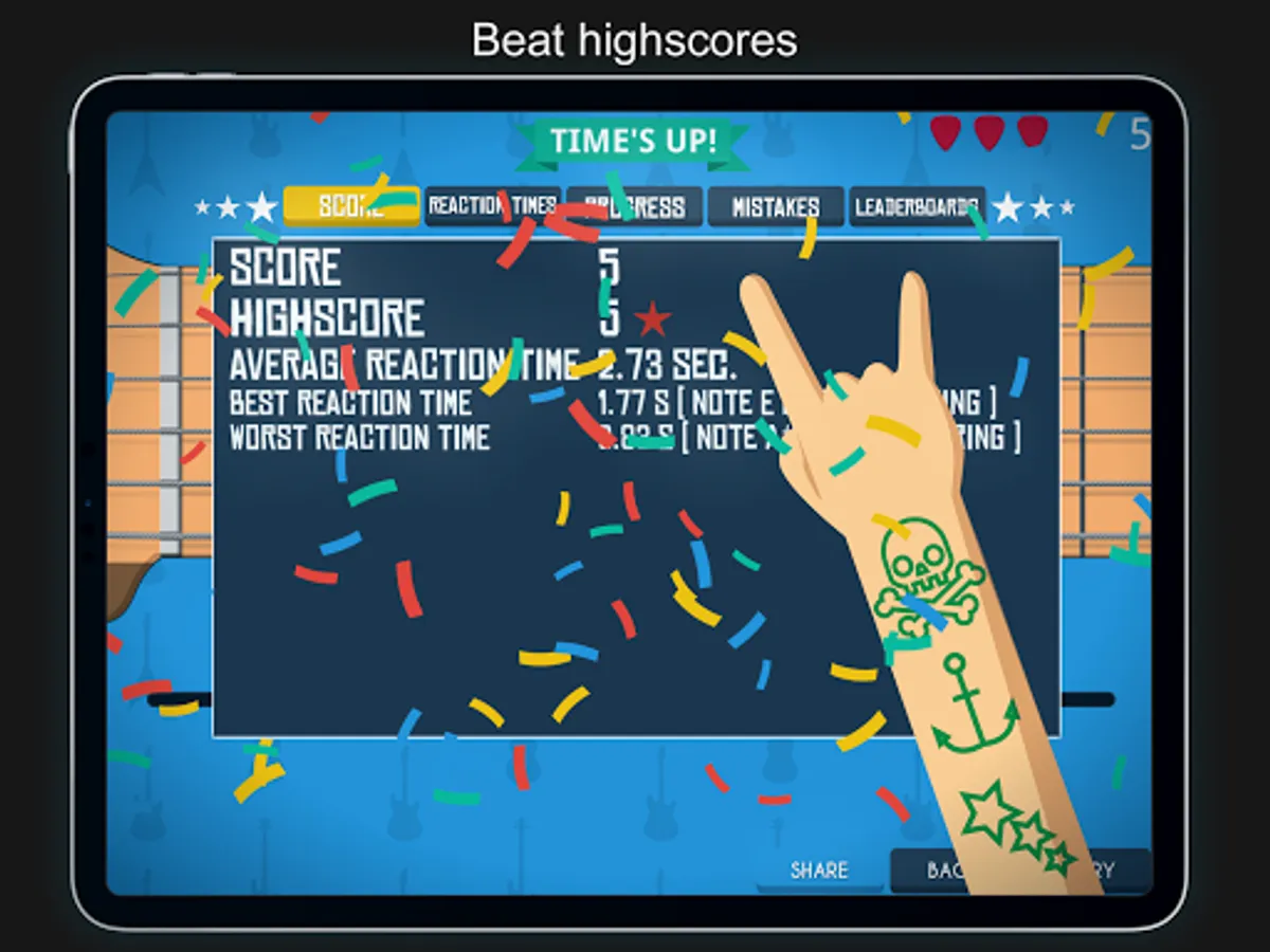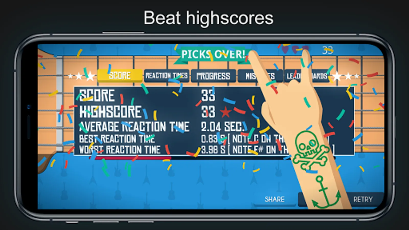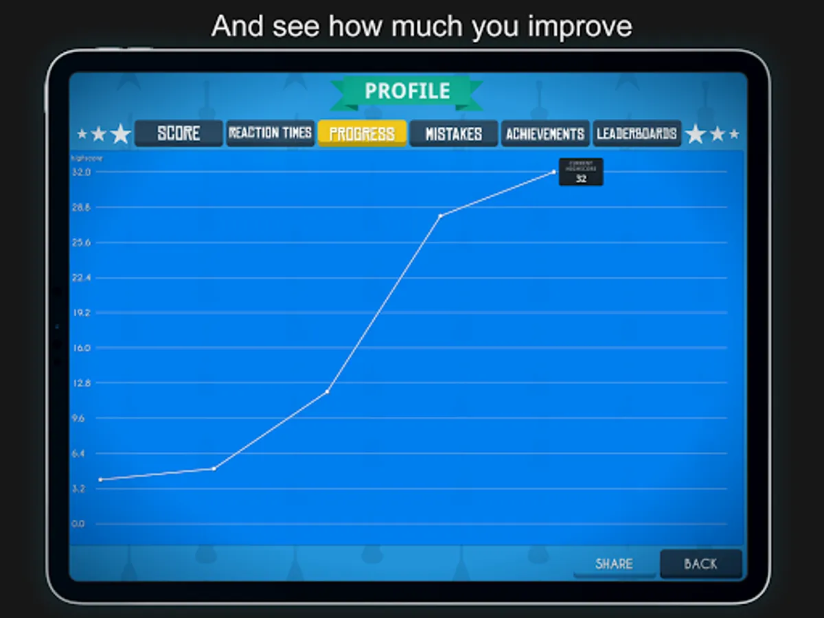 7. Build a foundation for ear training - by playing Fretboard Hero, slowly but surely you will improve you ear and help to make a connection between what you hear and what you see.