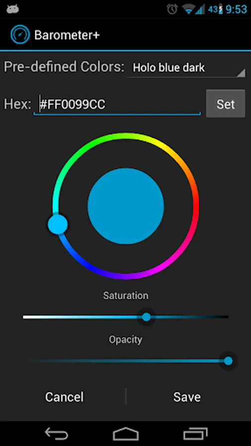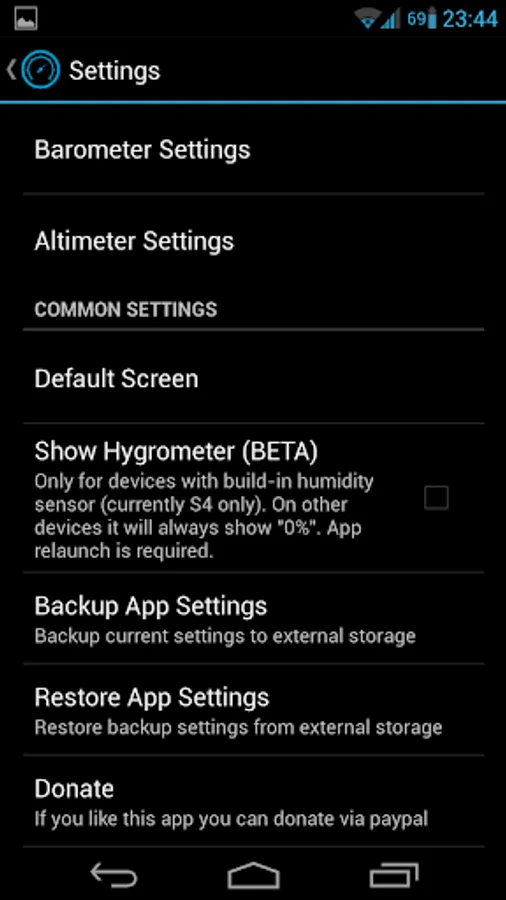 - DashClock users – DC refreshes itself about once an hour. After installing the Barometer app, enabling pressure tracking and adding barometer to a DC widget, please wait a while(up to an hour) until it starts displaying correct pressure (instead of ‘000’). Pressure tracking service of the Barometer app does not start immediately. It is synced with other services running on Your device to preserve battery.
