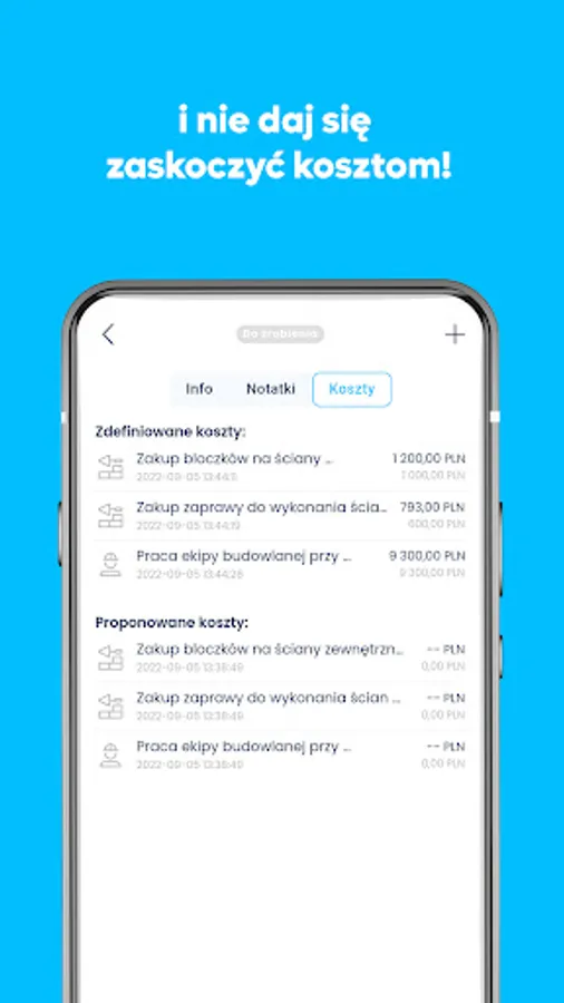 Adapt the list of tasks to your project and estimate the cost of its implementation. Verify how long each phase of construction should take. Skip all unnecessary tasks and mark their current status on your phone. Baid guides you by the hand and allows you to measure construction progress and expenses.