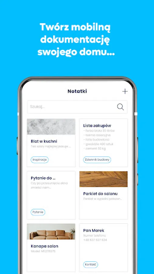 -virtual notebook for contacts, inspiration and photos of completed construction works