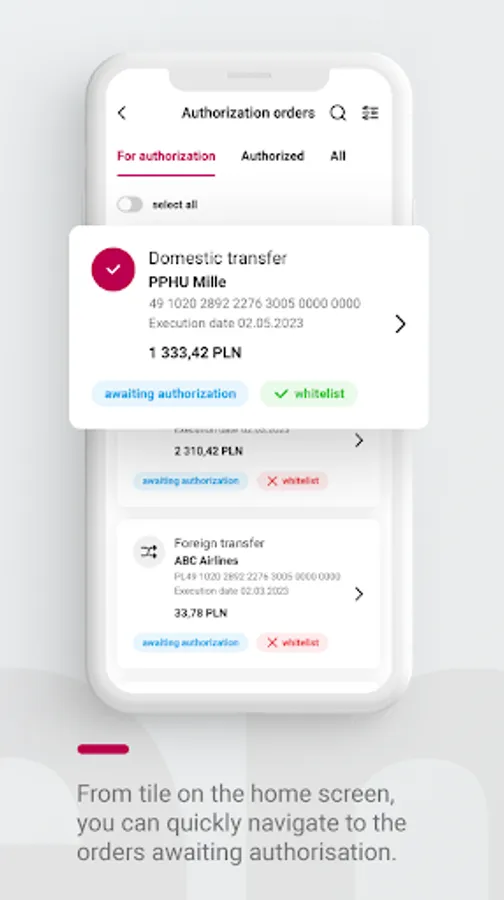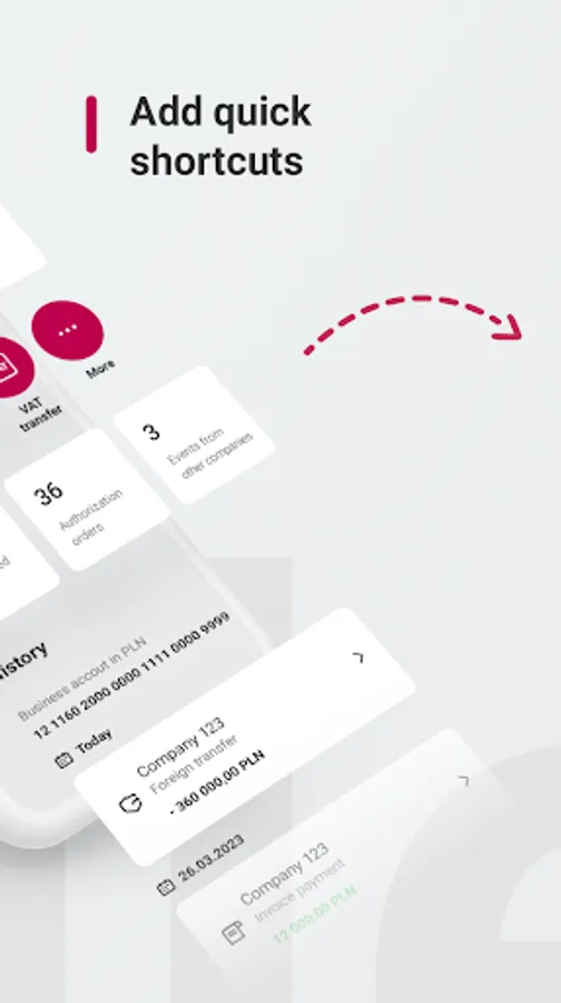 - convenient shortcuts - add quick shortcuts such as domestic transfer, foreign transfer, split payment
