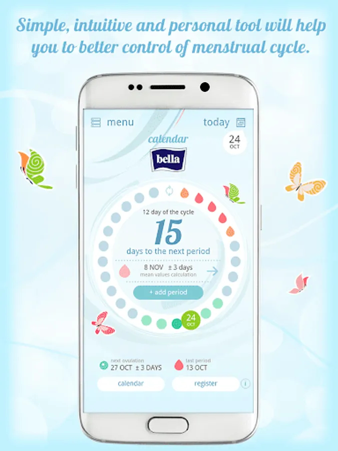 Do you want to know when your period starts? Or perhaps you need to know when your fertile days start in the coming month? Thanks to this free application you will be able to make a note of your cycle on your smartphone which you carry around with you almost all the time. Ovulation, infertile days or the menstruation itself will not surprise you anymore. The Bella menstrual calendar allows you to update the data, set reminders about, for example, taking the pill or describe the symptoms of the last period. The safety, comfort and convenience of this tool mean that you will never forget about your important days again.