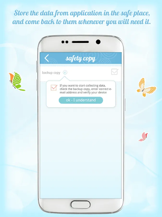 Your data likes it, too. That’s why you can save a copy of your data on a safe server. If you replace or lose your smartphone, you will be able to retrieve the up-to-date data regarding your cycle into the newly installed application in a fast and convenient manner.