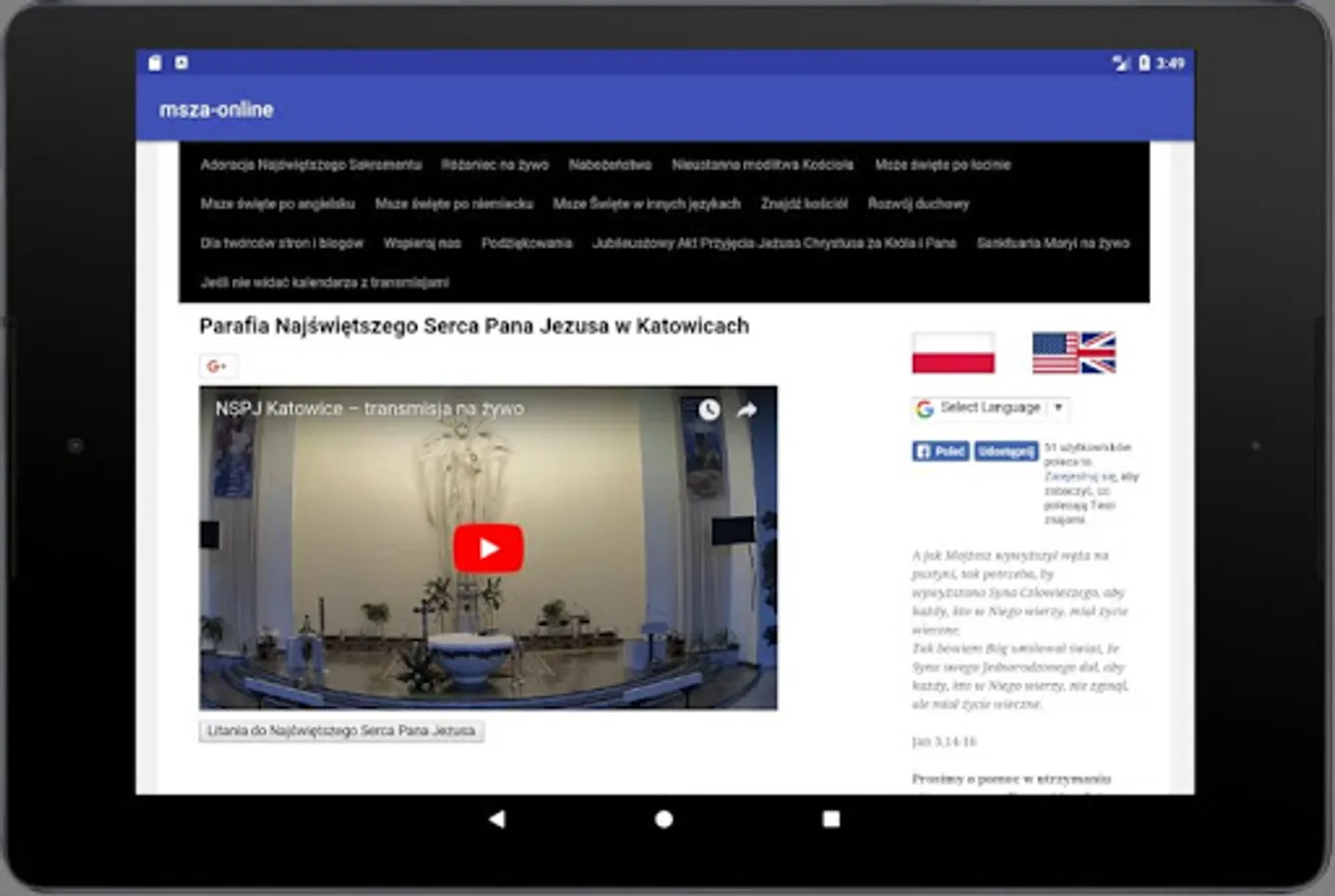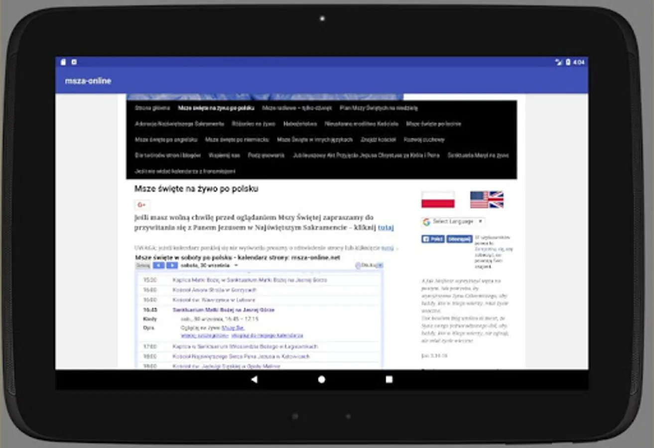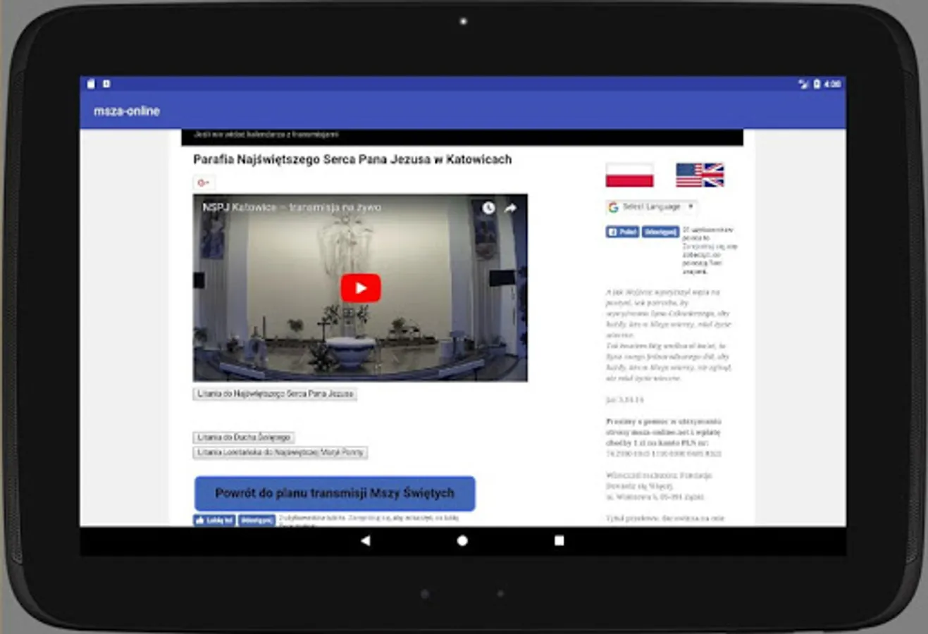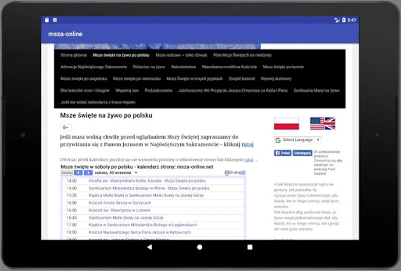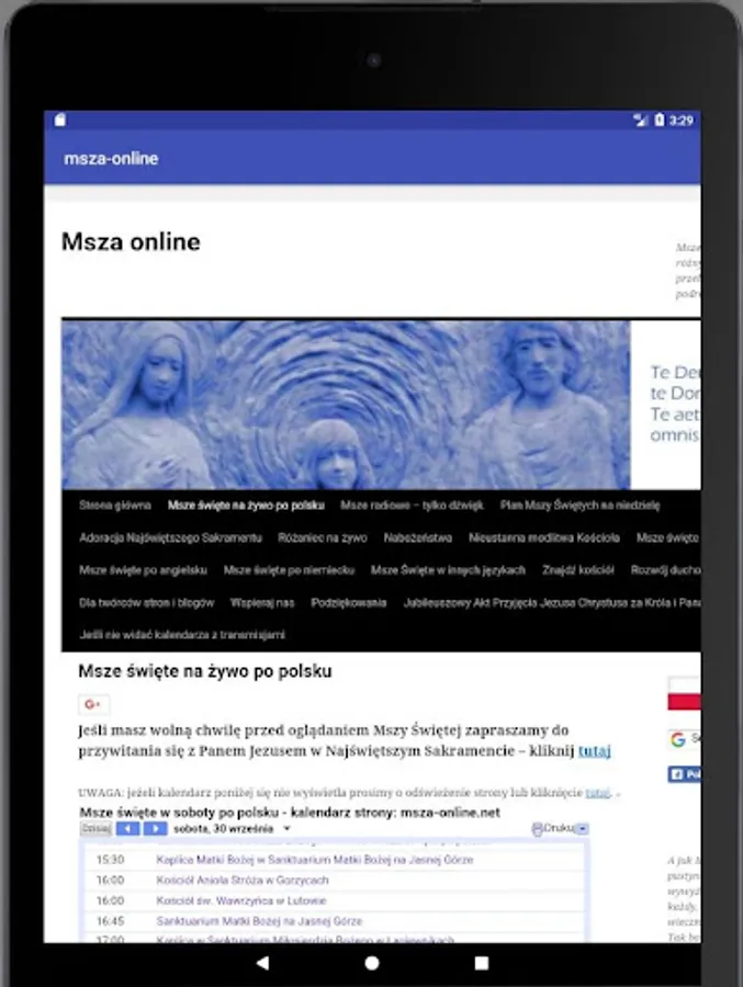Mass online application and online service msza-online.net allows thousands of people to watch Masses and devotions on their computer screens or mobile devices. The website has been prepared for the sick and for traveling to places where it is difficult to find the temple and participate in the holy mass. In addition to broadcast religious services and Masses the faithful may participate in the adoration of the Blessed Sacrament and in constant prayer of the Church tracking devices on their screen image transmitted from the temples.